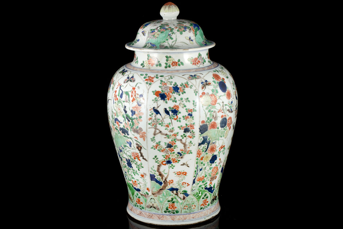 Large famille verte vase and cover.