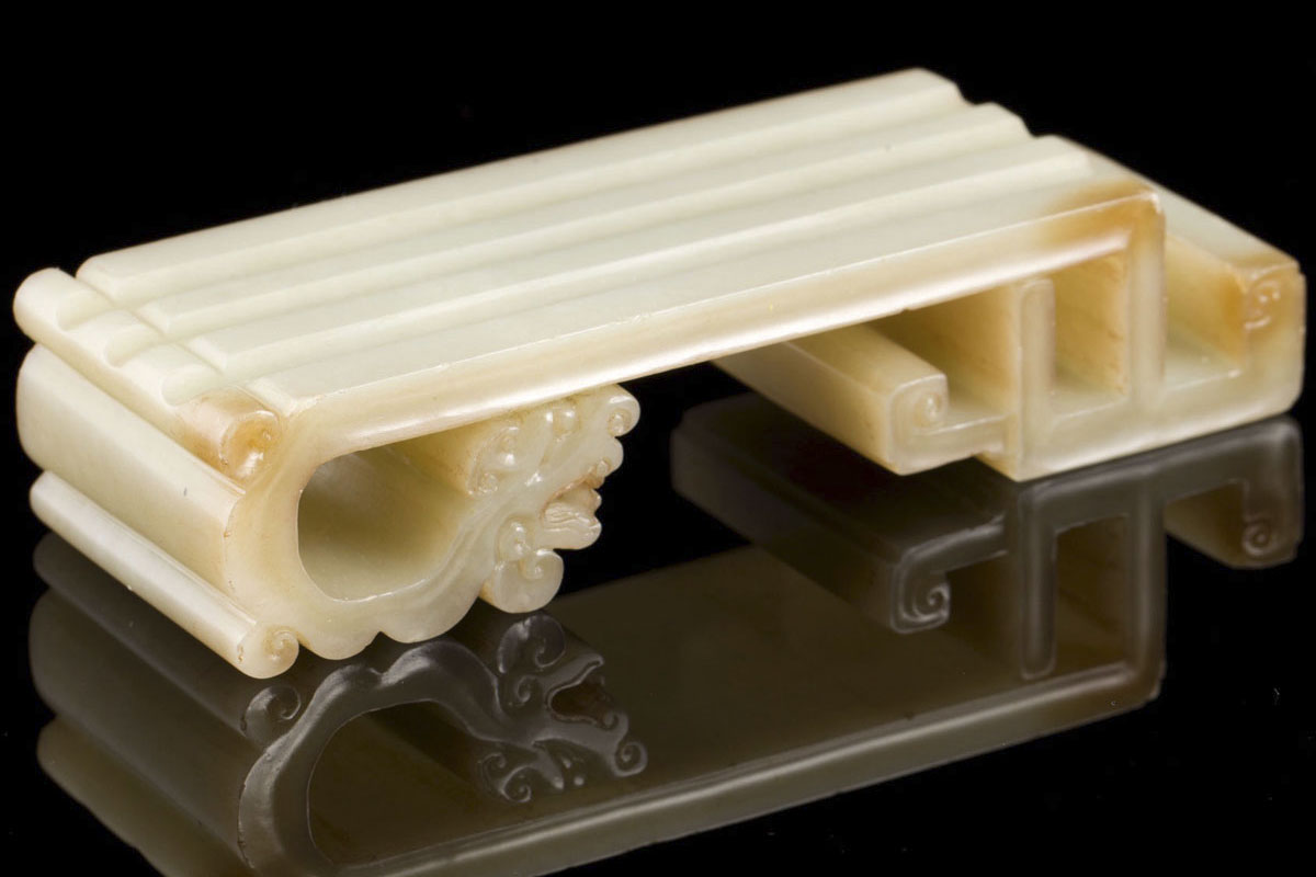 A jade archaistic dragon ink stick-rest, Kangxi period Era : Kangxi periodDimensions :